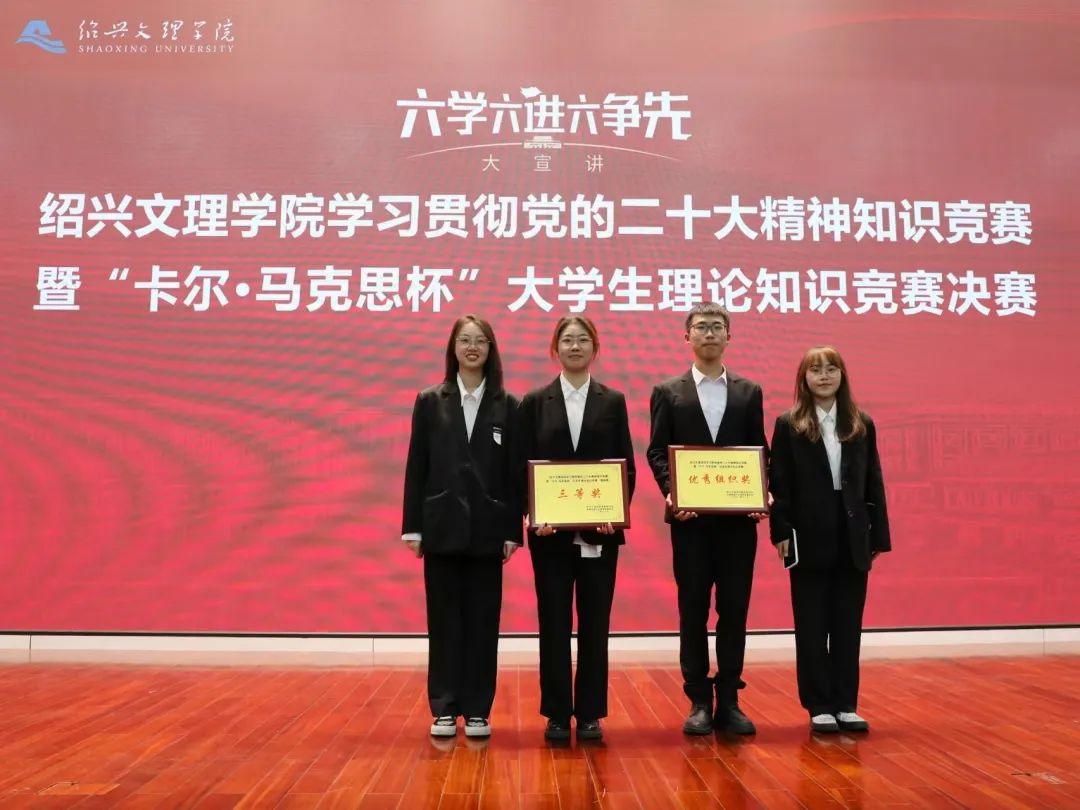 为了进一步深入学习贯彻党的二十大精神,11月7日晚6:30,绍兴文理学院2022年“卡尔·马克思”杯暨党的二十大精神知识竞赛在铁城科教馆顺利举行。本次决赛以党的"六学六进六争先"为主题,分为集体赛和个人赛两部分。