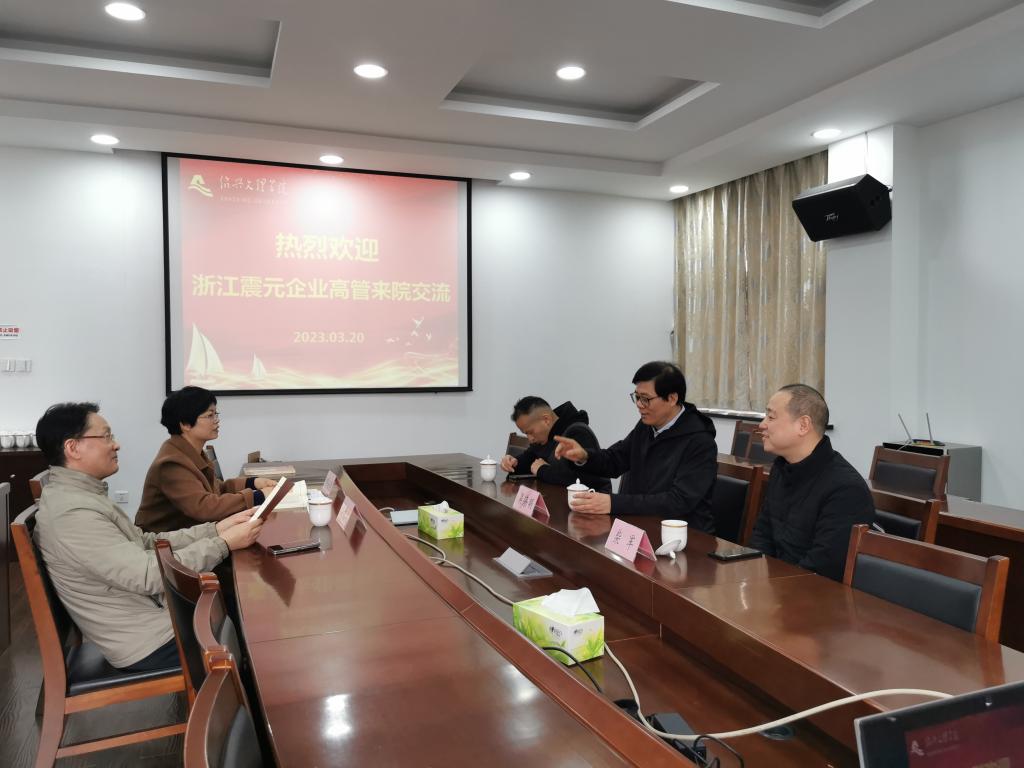 3月20日,浙江震元股份有限公司董事长吴海明、副董事长柴军、办公室副主任金国炳一行来学院调研指导。校党委委员、学院院长郭航远,副院长邢海燕参加调研交流。