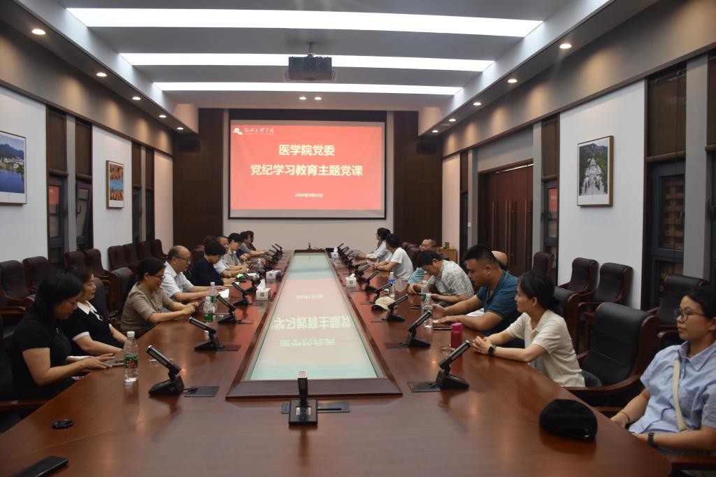 参观结束后,院党委书记吴剑平在大东山清风馆会议室为全体参加活动党员干部上党纪学习教育专题党课。吴剑平介绍了开展党纪教育工作的重要意义、学习目标、学习重点等,对新修订的《中国共产党纪律处分条例》重点内容进行解读辅导。号召党员干部强化自我品性修养,对照政治纪律、组织纪律、廉洁纪律、群众纪律、工作纪律、生活纪律,把自己摆进去、把工作摆进去、把职责摆进去,切实用党的纪律校正思想和行为。