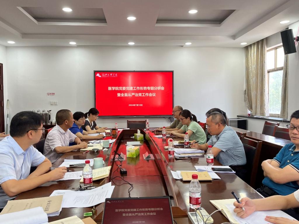 7月10日上午,我院召开2024年第二季度党建工作形势专题分析会暨全面从严治党工作会议,会议由院党委书记吴剑平主持,学院党委委员及全体支部书记参加会议。