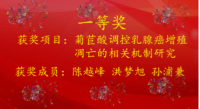 经过激烈角逐,最终陈越峰项目组题为《菊苣酸调控乳腺癌增殖凋亡的相关机制研究》的实验设计获一等奖;金恬项目组《黄芩苷抑制JAK/STAT3信号通路诱导胃癌细胞凋亡和张高洁项目组《菊苣酸对胃癌803的作用的分子机制研究》并列二等奖;杨培项目组《SGI-1027干预胃癌细胞MGC-803增殖及凋亡的研究》和张涛项目组《原苏木素B诱导胃癌细胞损伤与BCL-2介导的凋亡的作用及其机制》获三等奖;王军洋组《五味子醇甲对结肠癌的作用机制研究》、陆一鸣组《ENMD-2076诱导胃癌细胞凋亡作用和机制的研究》和杨依宁组《毛蕊异黄酮对肝癌细胞作用及其机制的研究》获优胜奖。比赛间各团队所展示出来的创新与思维的巧妙碰撞、口才与语言的无暇结合、实验设计与实验探索的完美整合都获得了评委很高的评价。
