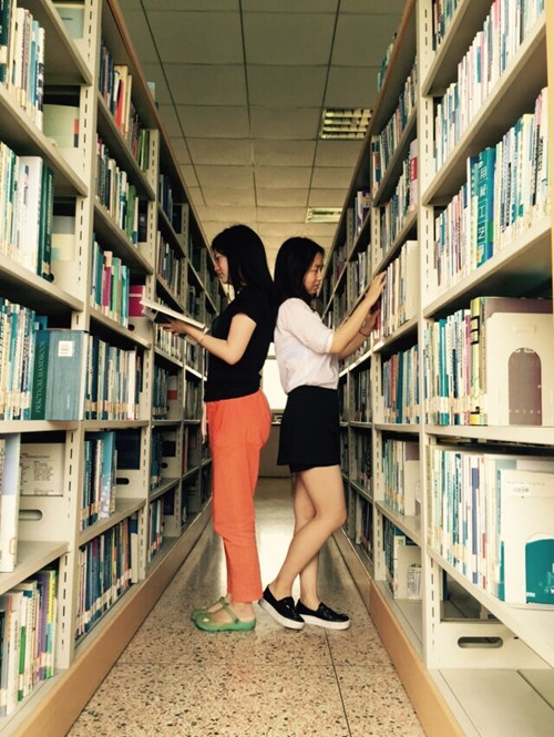 整齐陈列的书本散发着淡淡墨香,或泛黄或崭新的扉页,或朴素或华丽的文采,时光印刻着我们隽永的青春。静谧闲暇的午后,翻开一本厚厚的书,感受文字流淌心间的欣喜。也许若干年后的我们会怀念那些年与图书馆邂逅的曼妙日子。