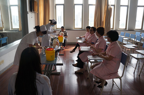 本次比赛邀请了各附属医院和教学医院的护理部主任、副主任以及护理系老师担任评委。比赛过程中,组织工作细致周到,竞赛安排井然有序,参赛选手分别就静脉输液和心肺复苏两项操作进行了比拼,她们精神饱满,积极投入,动作娴熟、稳健、规范,充分展现了我院护理学子饱满的精神风貌、精湛的护理操作技能和良好的专业素养。