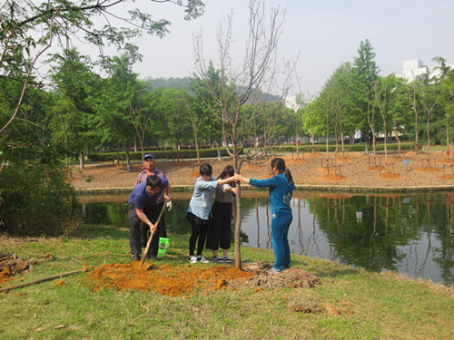 说到发起此次植杏林活动的初衷,袁油迪副书记说,成为杏林中人是每一位医学生的追求。希望同学们能够借此深入了解杏林文化的内涵,也希望同学们以古代名医董奉为楷模,学习他高尚的医德,培养自己的仁爱之心。袁副书记介绍说,发动同学们种植杏林,还有一层意义,那就是美化校园环境,为文化校园建设出一份力。“今天种下的每一棵杏树,都是同学们亲自挖坑、培土、浇水,这里有同学们的汗水,也有他们温暖的记忆;若干年后,这里将是一片郁郁葱葱的杏林,也是医学生们重返母校的相聚之地”。