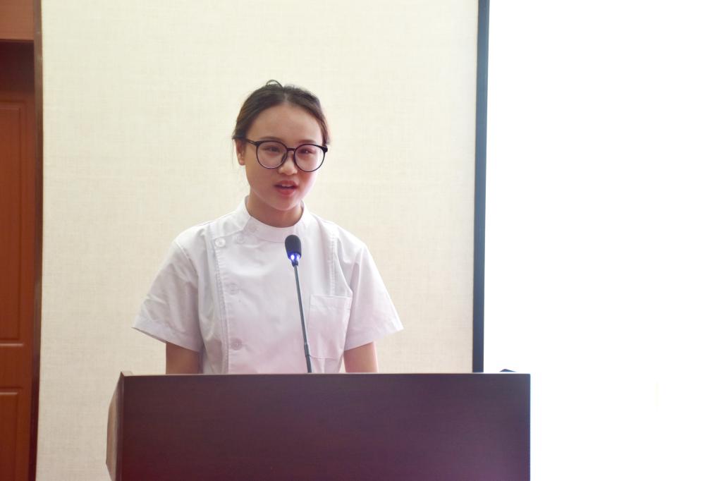考研学生代表、2018级护理学专业学生张倩表达了对学校在考研路上全方位的服务和支持、对老师全身心的帮助和指导的感激之情,将继续秉承学院崇德尚医的院训,做一名有温度、有情怀的白衣天使。授帽学生代表、2019 级护理学专业学生葛逸宁表达了对成为一名白衣天使的向往,将始终谨记医学生誓言,以严谨的态度,履行关爱生命、维护健康的职责。