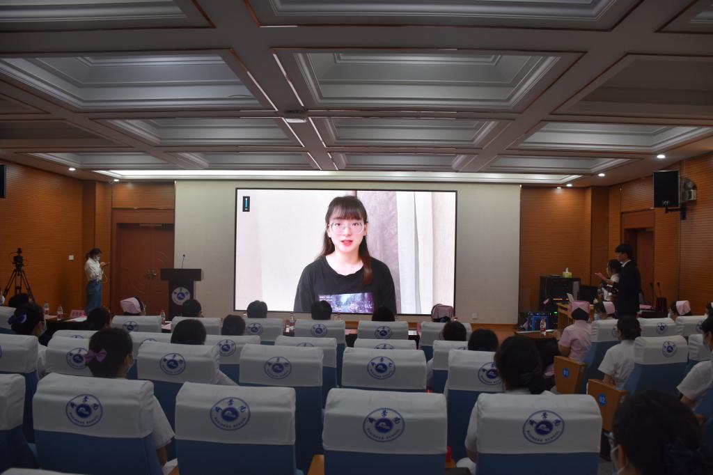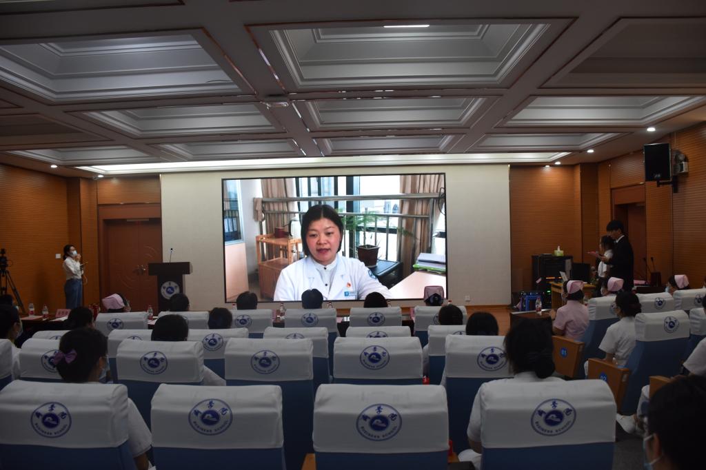 现场收到了来自校附属医院、校附属第一医院、校附属第二医院援沪校友们的视频节日祝福。在这特殊的时刻,护生们更深刻感受到了来自护理前辈们用实际行动践行“人民至上,生命至上”的崇高精神。