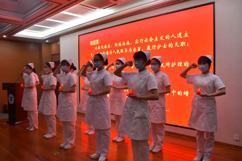 在金婷婷学姐的领誓下,全体护生举起右手,庄严宣誓,表达了献身护理事业,奉行革命的人道主义精神,坚守救死扶伤的信念,履行“保存生命、减轻痛苦、促进健康”的职责。