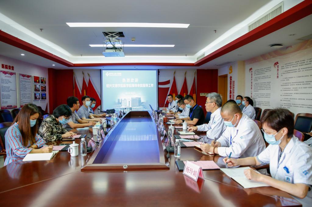 5月27日下午,副院长张剑率队赴校附属上虞医院对接2.5教学后续工作。校附属上虞医院党委书记龚月江,副院长韩士炜、何小平、俞栋、章鲁艇及该院办公室、科教科、医务科、总务科、质管科相关负责人参加对接会。