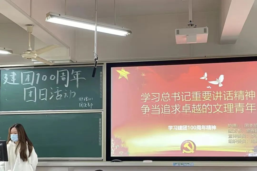 为深入学习贯彻习近平总书记考察中国人民大学重要讲话精神,深刻领悟习近平总书记在庆祝中国共产主义青年团成立100周年大会上的重要讲话精神,护理211班团支部于2022年5月16日开展了以“学习习近平总书记重要讲话精神,争当追求卓越的文理青年”为主题的团日活动。