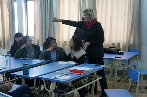 4月8日下午,Riitta在为护理学专业12级学生开展的精神护理讲座中,以独特的授课方式,令每一位学员都充分参与到课堂主体“Domestic Violence”中来。通过对一般情况的辨识和学生们对主题的逐一描述,她将大家巧妙地引入到主题,并启发大家深刻思考。学生们全程用英语进行交流,气氛自然融洽,讲座结束,大家仍意犹未尽。