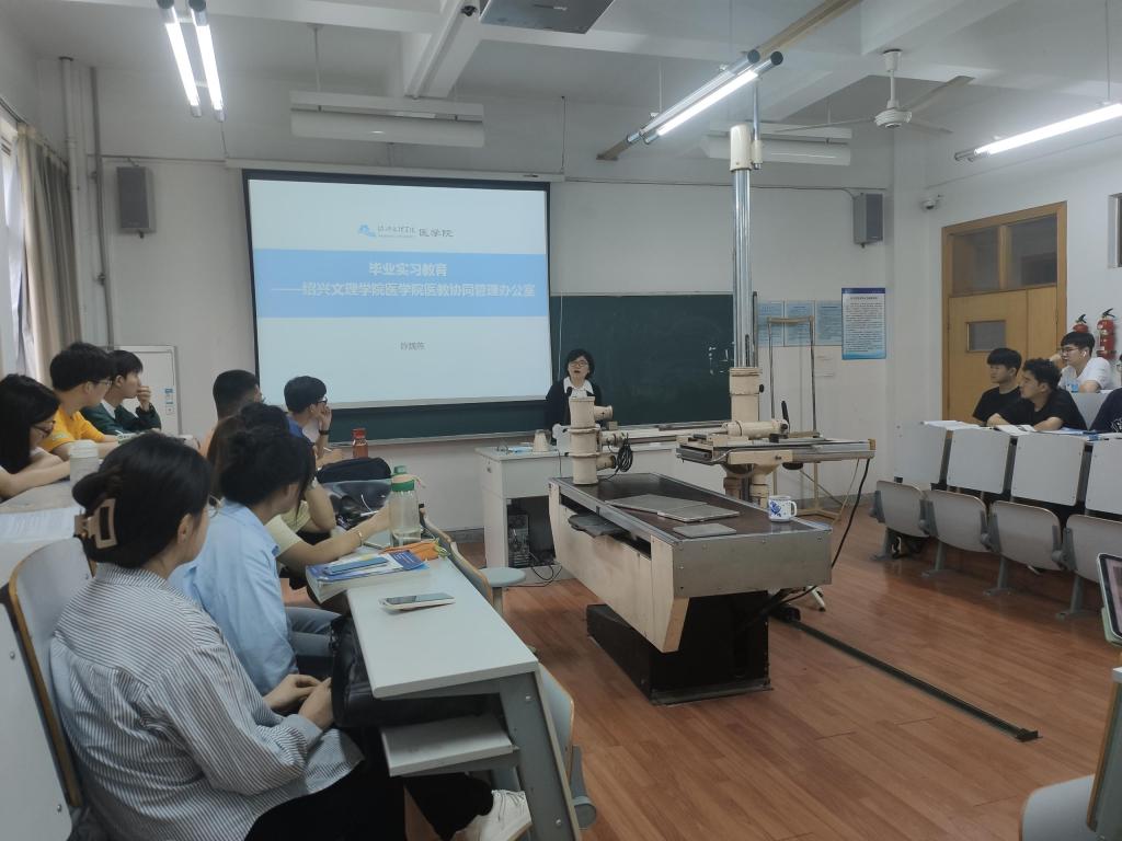 为安全有序推进毕业生实习工作,学院系(部)联合医教协同管理办公室分时段集中开展实习离校前动员和安全教育活动。5月18日,医学检验系在2号楼321教室举行2019级医学检验技术专业毕业实习安全教育讲座及动员会,校附属第一医院检验科吴东东老师应邀参加会议并作实验室生物安全相关专题报告;5月28日临床医学部和护理系分别组织召开视频会议,对2018级临床医学专业和2019级护理学专业毕业实习学生集中开展实习前动员和安全教育会;5月28日下午医学影像技术191班实习动员会在5号实验楼103教室顺利召开;6月8日下午,康复医学系在10号楼204教室召开康复治疗学2019级毕业生实习动员大会。