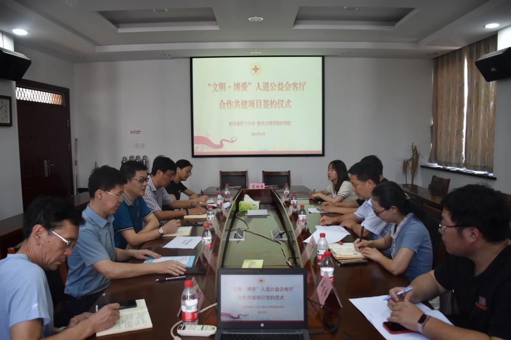 2022年6月29日上午,绍兴市红十字会、绍兴文理学院开云最新官方“文明▪博爱”人道公益会客厅合作共建项目签约仪式在行政楼219会议室举行。绍兴市红十字会党组成员、专职副会长徐泳,常务副院长葛建荣,副院长张剑出席签约仪式,市红十字会赈济救护部、院办公室、教研科、红十字会、解剖学教研室相关同志参加仪式。