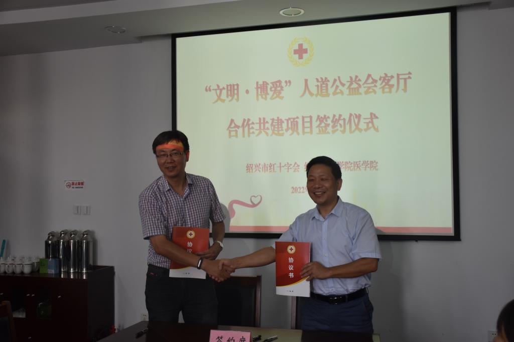 张剑副院长代表学院与绍兴市红十字会党组成员、专职副会长徐泳签订合作共建项目协议。