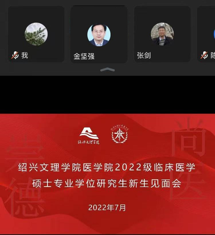 7月2日晚,我院2022级临床医学硕士专业学位研究生新生见面会在钉钉平台举行。院党委副书记金坚强、副院长张剑出席见面会并讲话,学生科、教研科相关负责人,新生班主任、辅导员,以及106位2022级临床专硕研究生参加会议。