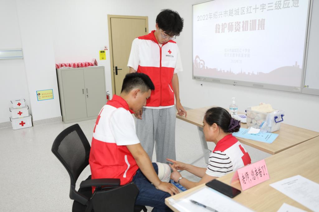 7月4日至6日,绍兴市越城区红十字三级应急救护师资初训班在我院成功举行,来自越城区各乡镇、街道、学校、企业、医院和我院“爱之翼”救护社的49名学员参加培训。越城区红十字会党组成员、专职副监事长俞文妹,院党委委员、教研科科长、红十字会秘书长马国庆出席了开班仪式。