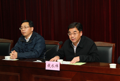 钱水祥副书记发表讲话。他代表学校表达了两个感谢。一是感谢一位充满爱心的母亲——楼梅志女士,是她将儿子10万元的抚恤金捐给了学校,将对儿子的思念升华成了一种社会责任,这是一位母亲的大爱,一种让人尊重的大爱;一位是情系母校的校友——王荣彪主任,他是我院前身绍兴卫校84届临床医学毕业生,始终关心母校、服务母校,今年根据母亲意愿,将10万钱捐给母校,在学校设立基金和奖学金。最后,他要求基金会管好基金、用好基金;要求学院总结经验、创新方式,评好奖学金,让基金和奖学金在培养优秀医学人才中发挥引领作用;要求同学们以社会主义核心价值观为指引,自强不息,志存高远,心存感激,学会感恩,摆正位置,勇于担当,做一个理想远大、信念坚定、诚信友爱、奉献爱心、有责任心和进取心的青年大学生。