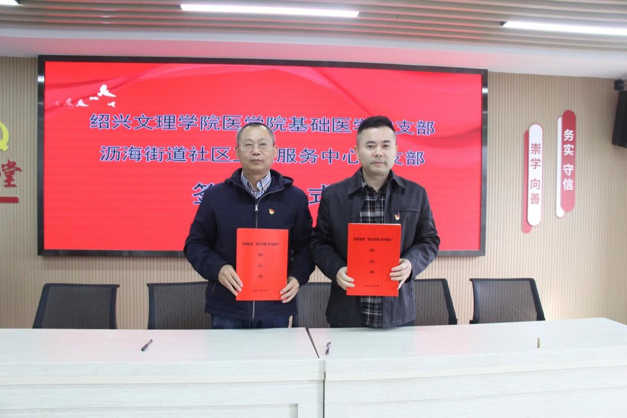 2022年10月13日,学院党委与越城区沥海街道党工委在沥海居委党群服务中心举行“向海而兴 筑梦蓝海”校地共建签约仪式。本次活动是继前期初步意向建立后,双方共同推进校地党建共建契约化“三全”强基工程的全新开端,标志着校地共建工作向前迈出了一大步。