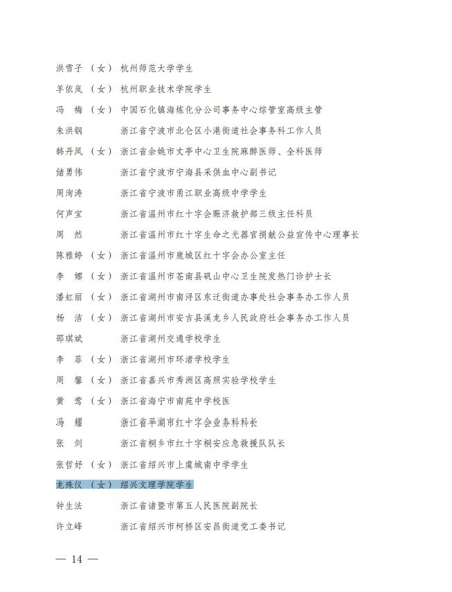 11月14日,中国红十字会“会员之星”名单公布,我院“爱之翼”救护社社长、医学检验技术191班龙殊仪同学入选。