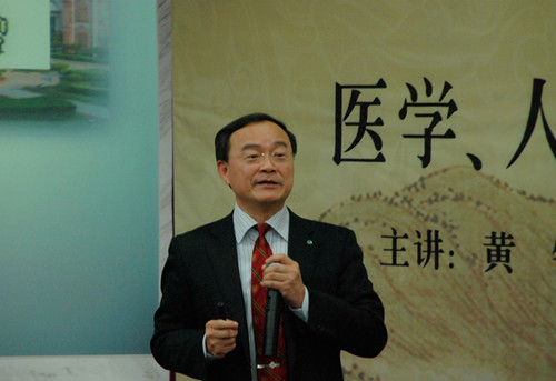 现代医学实践的弊端在于:历史洞察的贫乏、科学与人文的断裂、技术进步与人道主义的疏离。黄钢教授用威廉•奥斯勒提出的“医学实践的三个弊端”开始他的演讲。