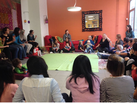 除此之外,服务学习在这里也很普遍。由于Preventive Nursing的学习中的一个Health Promotion Project,我们会去一个政府组织的机构——Gloria。这个机构免费帮助人们解决日常生活中的困难,定期教授芬兰语。在那里,我们学习一些芬兰的日常生活语言,组织一些活动,提供给来这儿学习的人们一些专业的知识。图片里就是大家在一起游戏时的画面,大家用各自的语言唱一些简单的歌曲,帮助熟悉其他国家的语言和文化。这是一个很好的交流不同文化、风俗的场所。