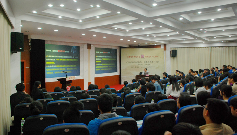 10月27日19:00,学院财贞楼二楼学术报告厅内座无虚席,200余名师生在此聆听复旦大学医学博士、人体解剖学教授、博士生导师彭裕文畅谈他对医学人文的思考。
