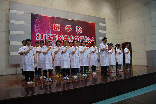 据悉,医学生宣誓仪式是医学生步入医学殿堂的第一堂课,也是2014级新生始业教育活动中的关键环节,对增强新生学习医学的责任感、使命感和作为未来医务工作者的荣誉感具有重要意义。