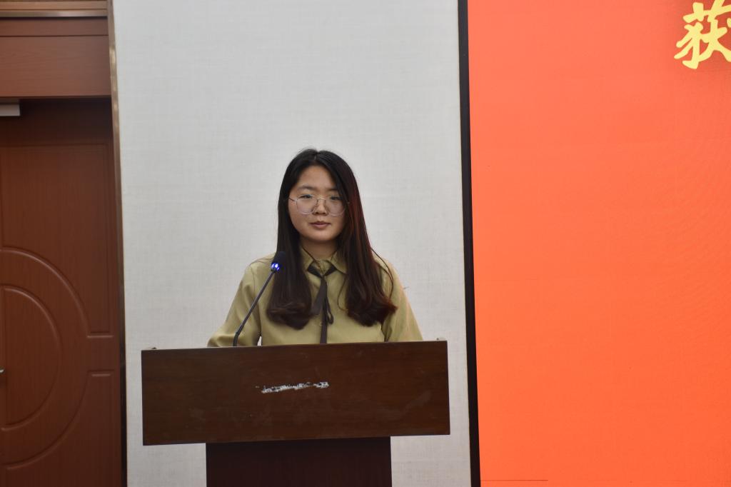 获奖学生党员代表医学检验技术201班王芸同学表态发言。她表示,将继承好绍医老党员们的精神,努力学习,涵养自己的仁心仁术,为学院的发展增添自己的红色青春力量。