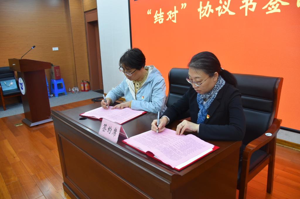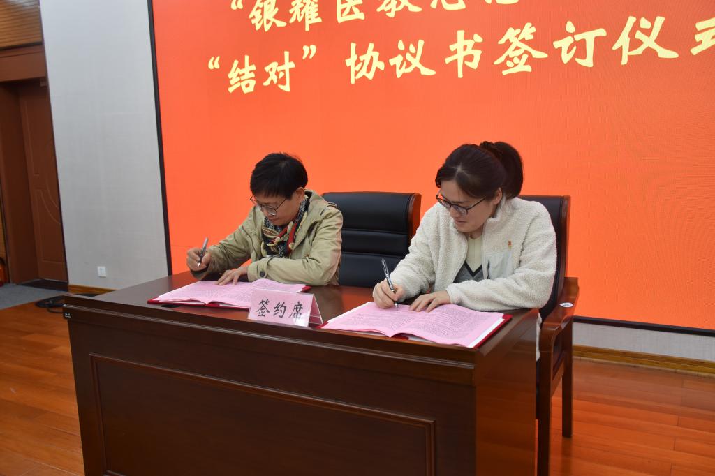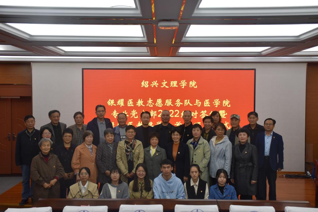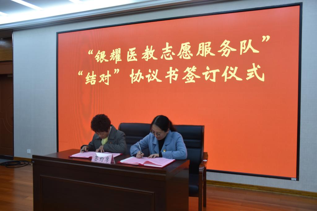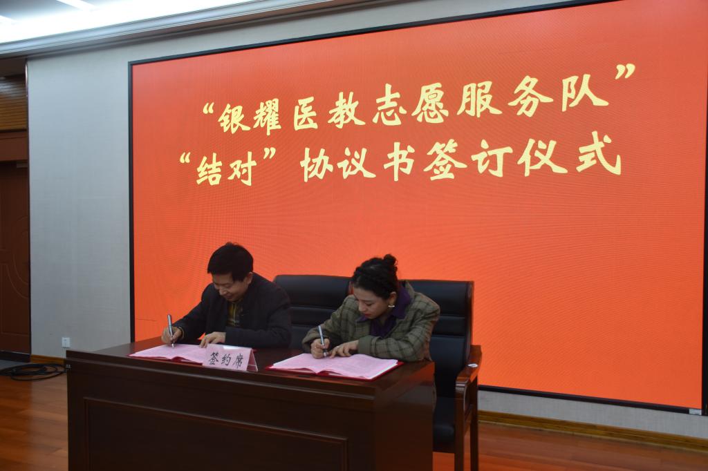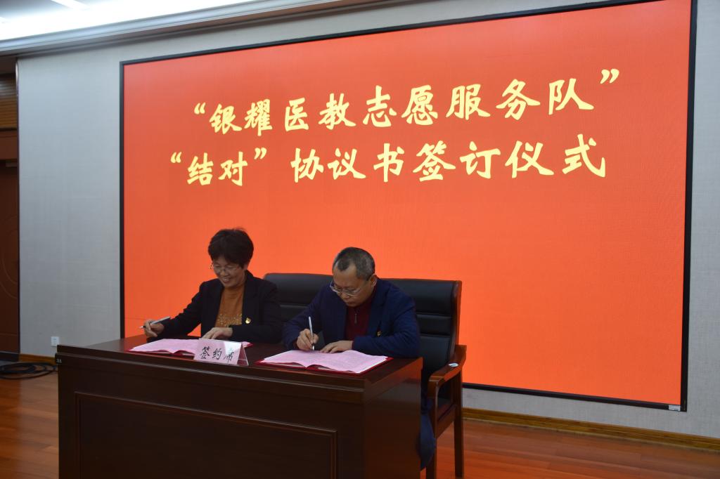 学校“银耀医教志愿服务队”5个党员志愿小组组长、副组长分别与学院专业学科党支部书记签订“结对”协议书。