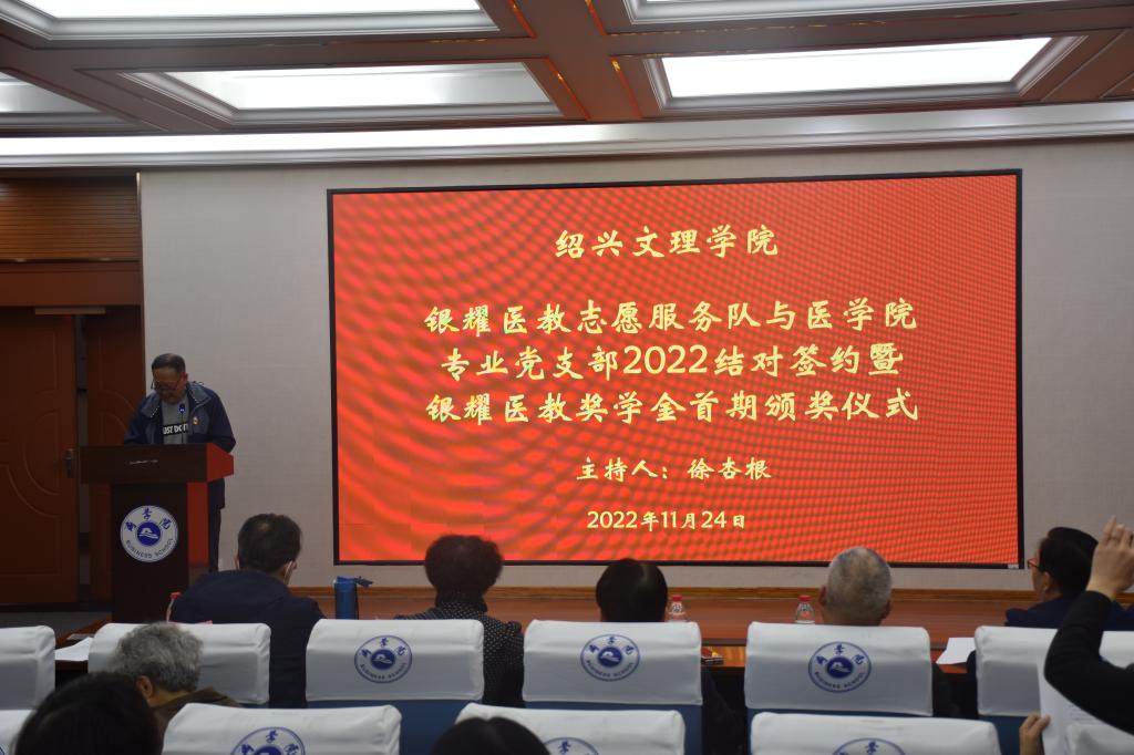 “银耀医教志愿服务队”名誉队长周武强宣读了2022年首期获得“银耀医教奖学金”名单的通知。