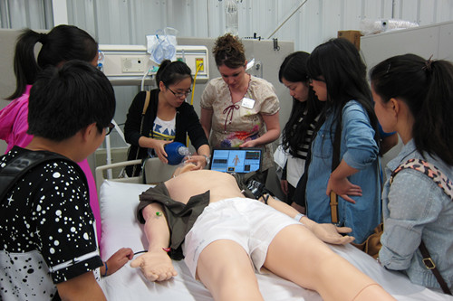 博士的热情接待和全程陪同。在双方学校的多次商定下,夏令营内容安排紧凑有序:上午聆听苏必利尔湖州立大学多位资深教授的授课,下午参观苏圣玛丽的医院、社区诊所、消防站、警察局、市政厅、博物馆等,此外利用周末时间寄宿在当地美国人家庭以切身体会美国的习俗。在为期三周的夏令营期间,我院同学通过在LSSU全英文课程的学习,深入了解了美国的医学教育概况、医疗保障体制、医护执业资格的申请、社区和家庭护理、精神护理、基础护理、模拟病房的操作实验等内容。同时,该校安排的篮球课、美国当地文化课、电影文化课、饮食文化课、美术课(Marbling)、草坪音乐会、歌剧欣赏以及与LSSU学生交流活动等让同学们深切感受浓郁的美国多元文化气息。
