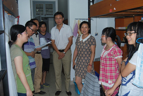 王建华副院长、夏国园副调研员一行看望了1幢宿舍楼的新生,每到一处都仔细查看宿舍门窗和整体卫生情况、宿舍配电设施的规范管理,甚至小到宿舍的物品工具摆放都成了院长关注的焦点。他嘱咐随行老师对发现的问题要进行全方位考虑以便更好、更快地解决,努力为学生提供一个温馨舒适的居住环境。