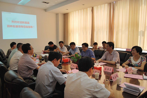 6 13 下午,新昌县羽林街道党政班子在高雪军书记的带领下来院考察交流,校领导钱水祥副书记,校党委委员、校组织部部长裘愉萍,校党委委员、院党委书记柳国庆及学院其他领导班子成员、办公室相关人员热情接待了来访人员。