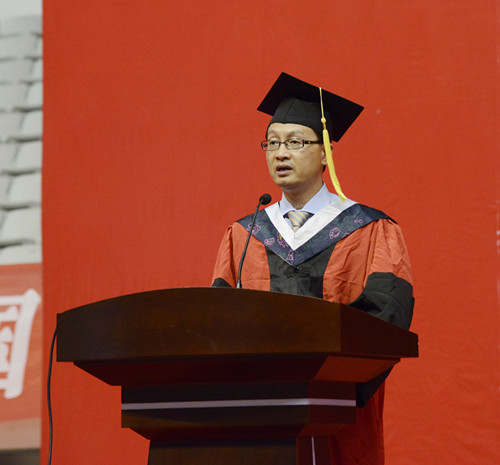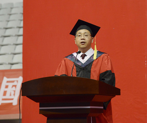 仪式由柳国庆书记主持,郭航远院长代表学院讲话。在对382位同学取得学位表示祝贺的同时,郭院长希望毕业生带着一份敬畏和感恩,带着一份梦想和信仰,带着一份坚持和执著,用“健康梦”、“生命梦”、“医学梦”托起“中国梦”;希望毕业生用不屈的脊梁托起高贵的头颅,挺起胸膛,勇敢地跨出校门,融入社会,感受生活,书写人生;希望毕业生左手握住理想,右手握住坚强,在母校深情的目光注视下,越走越远,越走越风光!
