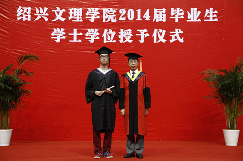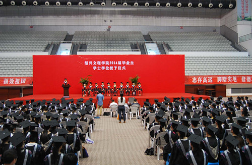 下午,河西体育馆内,伴随着悠扬祥和的《辉煌时刻》、《再回首》歌声,庄严而隆重的2014届毕业生学士学位授予仪式在此举行,校长叶飞帆身着导师服,为我院382位取得学位的毕业生授予学士学位,并一一合影留念。