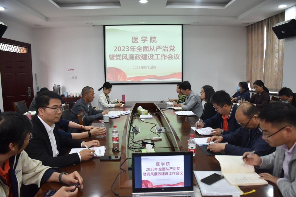 5月10日,学院在1号楼219会议室举行2023年全面从严治党暨党风廉政建设工作会议。学院党政领导班子成员、主要科室负责人、党支部书记等参加会议。学院党委副书记、纪委书记林国旗主持会议。