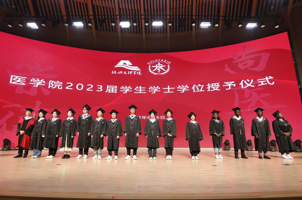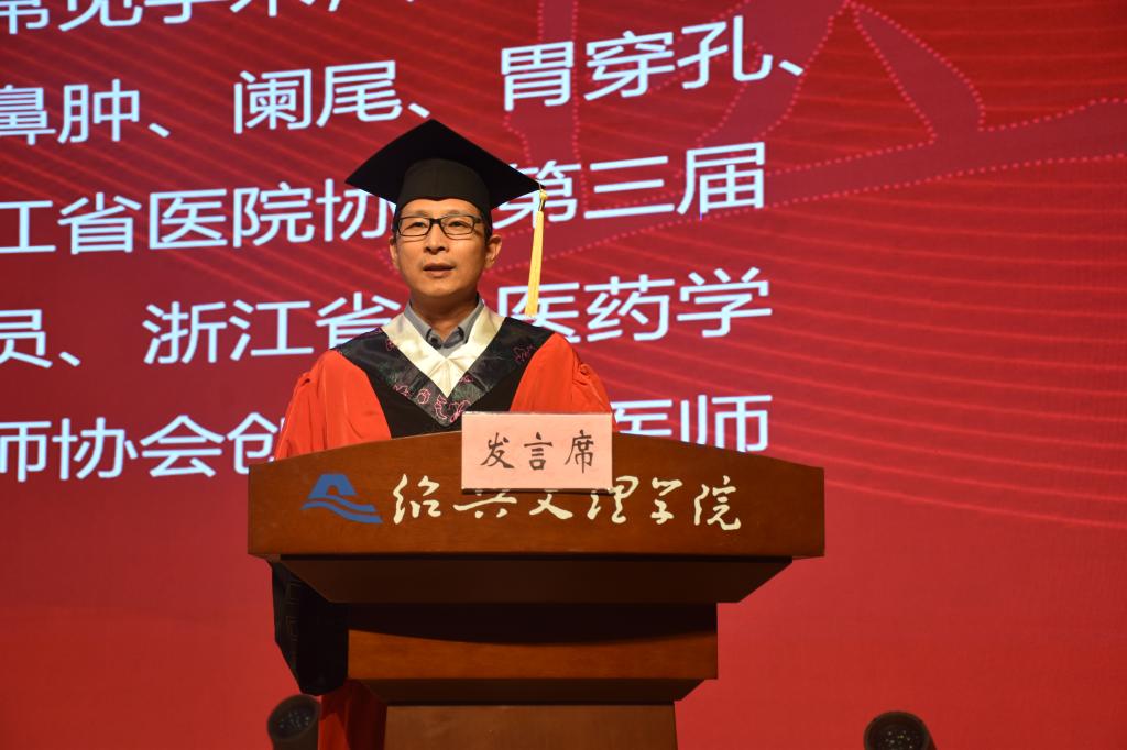 院长寄语全体毕业生。他指出,作为特别的一届毕业生,你们经历了三年疫情,把最美好的青春留在了文理,感谢你们与开云最新官方的相遇、相知和相伴,感谢你们让百年绍医历久弥新、生生不息。他期待同学们能眼里有光,脚下有力,心中有温度,手上有乾坤。期待能明辨是非,独立思考,知行合一,不迷失,不走偏。期待能终身学习,不断进取。期待同学们的良心和良知让医学充满仁爱的力量。