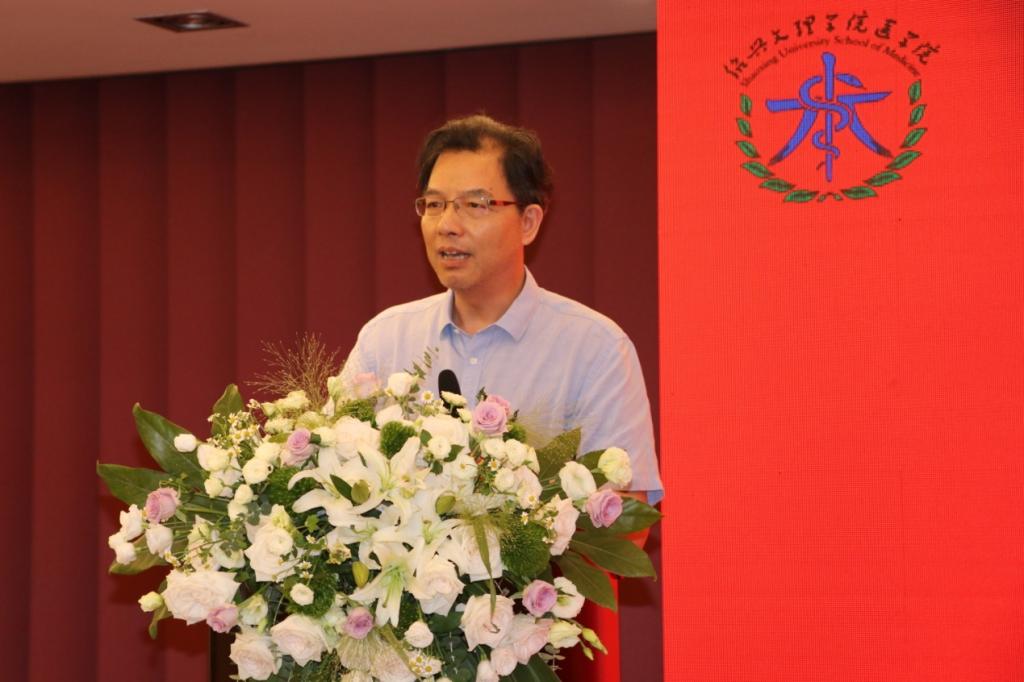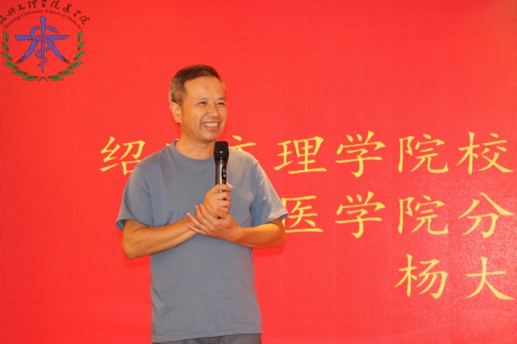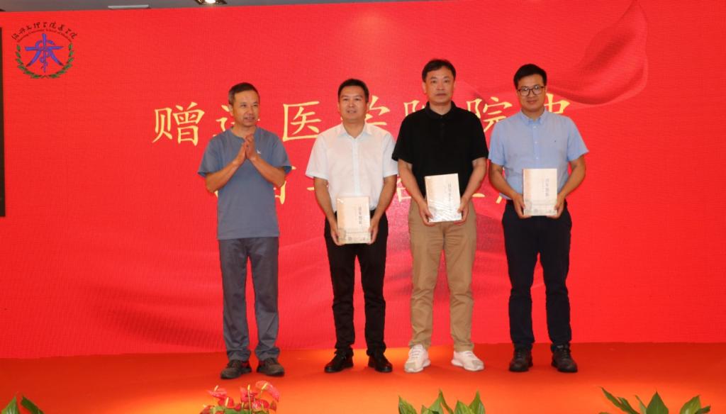 杨大明为校友代表赠送开云最新官方院史《百年绍医》。