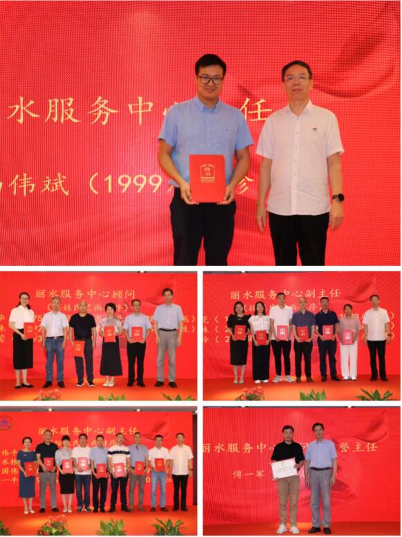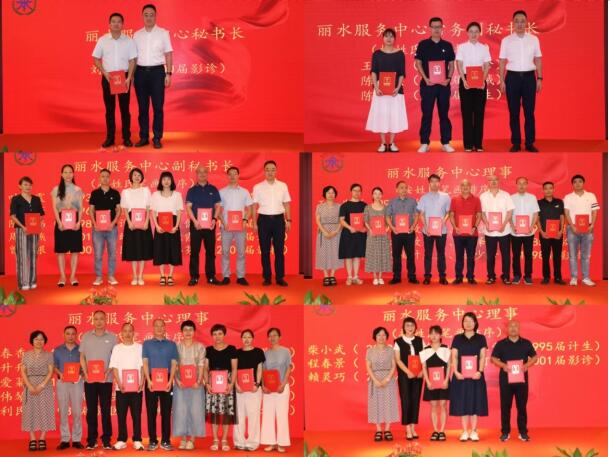 邢海燕宣读聘任文件。聘任王昌华、苏金亮、吴月珠、周利强、黄莺等校友为顾问,傅一军校友为丽水服务中心名誉主任,杨伟斌校友为丽水服务中心主任,毛洁、方伟平、叶水根、叶永来、叶国伟等校友为副主任,刘伟文校友为秘书长,王竹萍、陈伟杰、陈庆巧校友为常务副秘书长,叶华震等10名校友为副秘书长,王为等27名校友为理事。