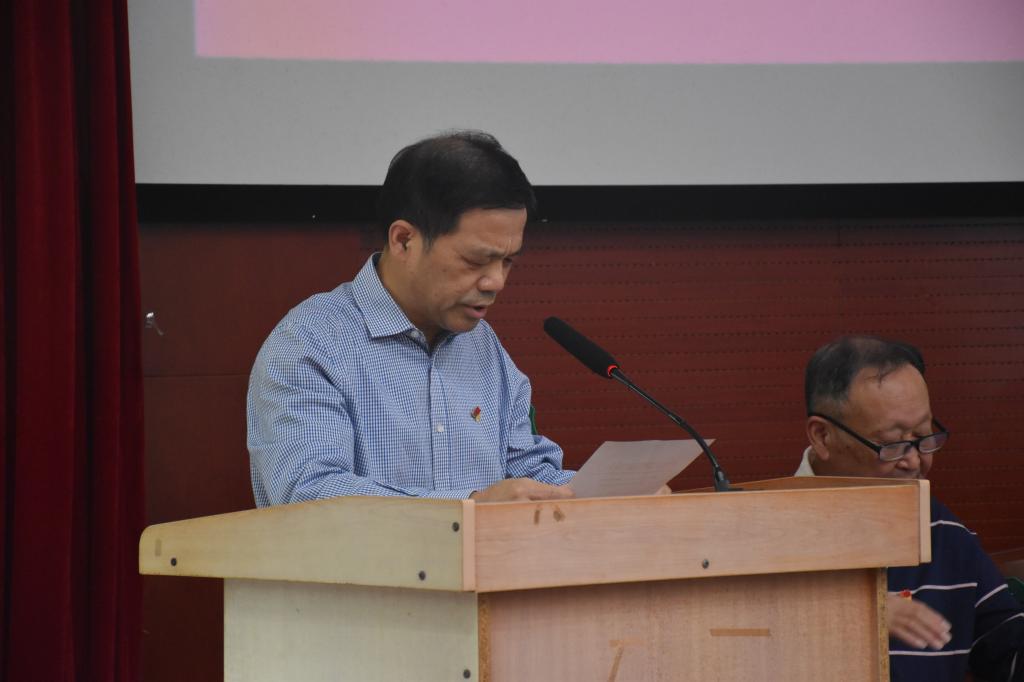 “银耀医教志愿服务队”名誉队长钟建平宣读 第二届“银耀医教奖学金”获奖文件。