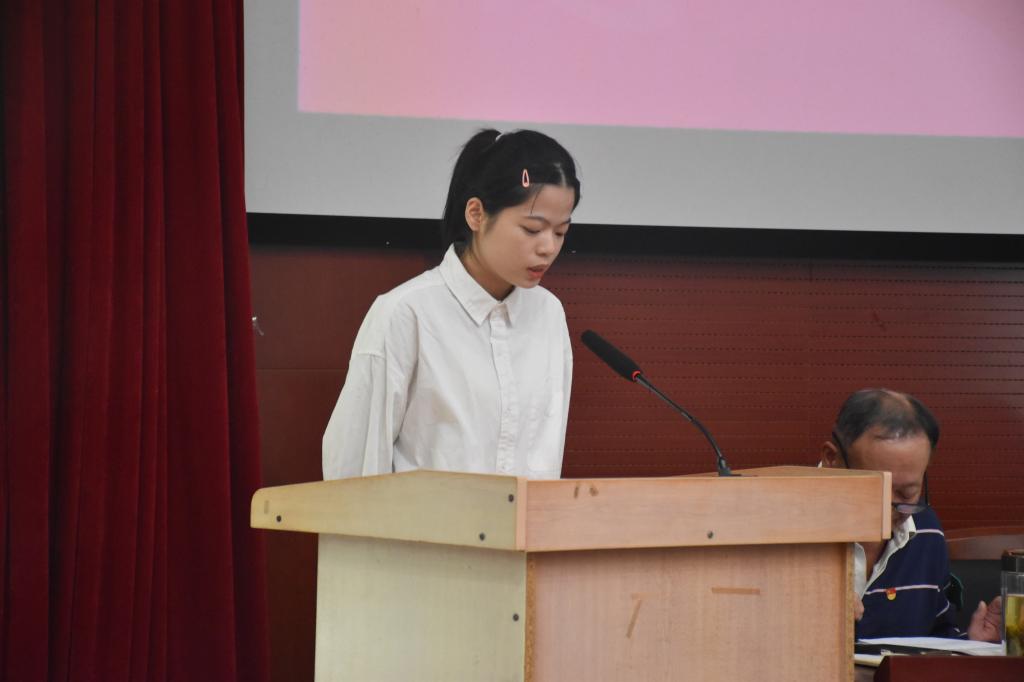 获奖学生党员代表、康复医学党支部、康复治疗学201班周兰同学发言。她在感恩老党员老师们的同时,激励自己和广大同学继续锤炼奋斗、卓越进取。