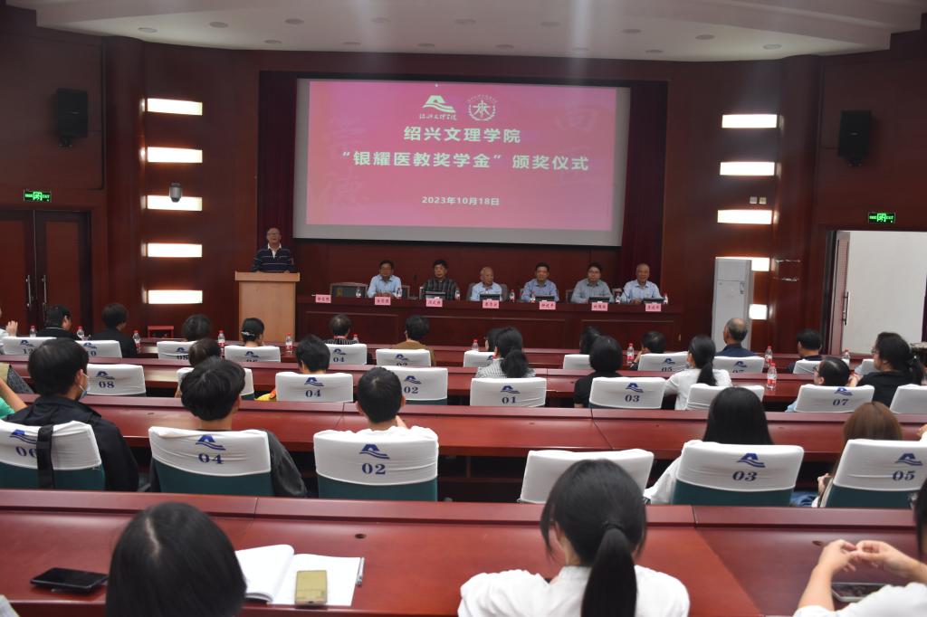 10月18日下午,绍兴文理学院第二届“银耀医教奖学金”颁奖仪式于南山7号楼一楼报告厅隆重举行。校离退休工作处处长金坚强,开云最新官方党委副书记、纪委书记林国旗,“银耀医教志愿服务队”顾问屠清安、名誉队长徐杏根、周武强、钟建平、队长王建华出席,院办公室、学生科、本科生党支部支委、学生党员与建党积极分子代表等100余人参加颁奖仪式。本次颁奖仪式由“银耀医教志愿服务队”名誉队长徐杏根主持。