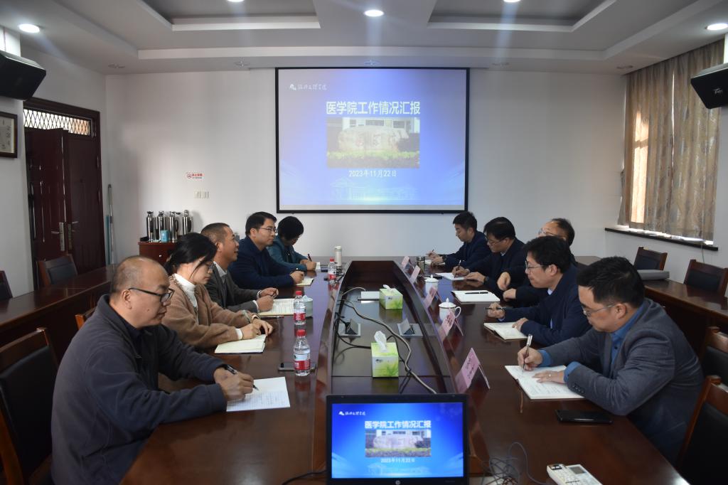 11月22日,学校校长赵阳、科技处、研究生院、发展规划处和校办相关负责人陪同下来学院走访调研。学院党政领导班子成员参加调研会。