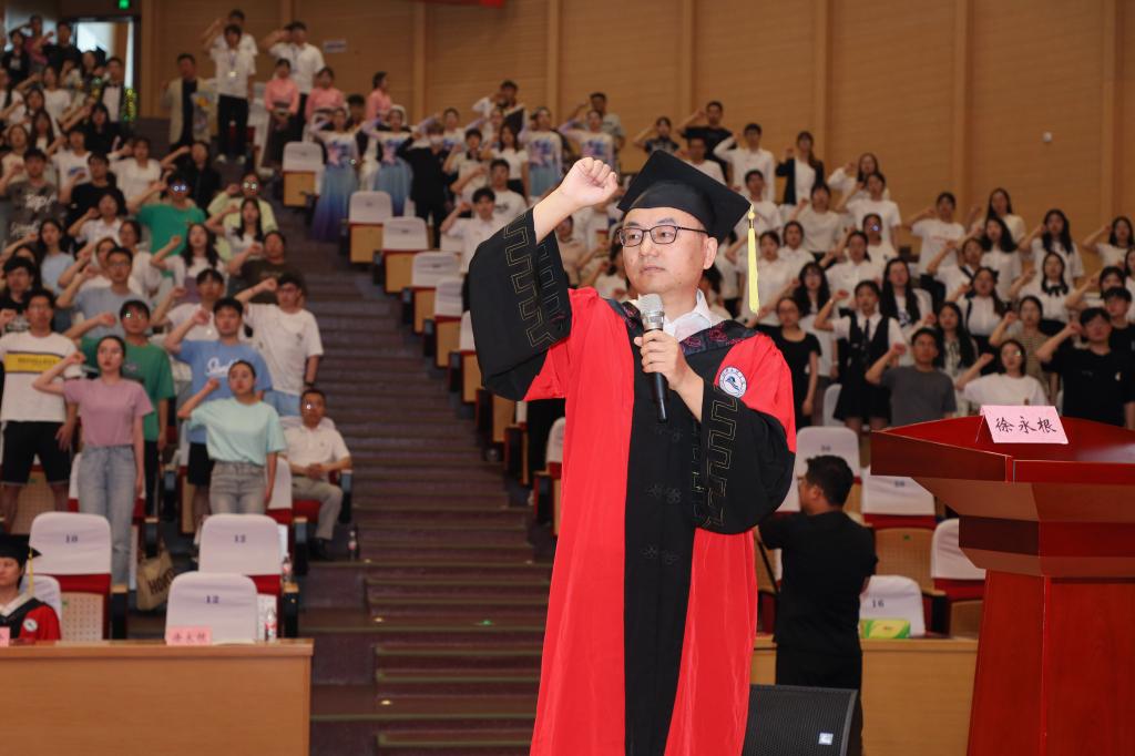 典礼最后在校附属医院副院长徐永根老师领誓的医学生誓言重温中落下帷幕。(院办公室)