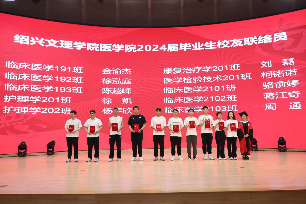 吴剑平寄语全体毕业生。他指出,作为新时代绍医人,传承的是百年绍医人,悬壶济世,以医报国的家国情怀;是仁术兼修,民生至上的使命担当;是精益求精,臻于至善的职业追求。他期待同学们敢于追梦,努力圆梦,富有激情,朝气蓬勃,无惧挑战,也能明辨是非,独立思考,知行合一,在复杂多变的社会中坚定有力,不迷失,不走偏;能终身学习,不断进取,树立终身学习的理念,不断提升自己的医学理论水平和临床实践能力。能崇德尚医,秉持良知,永远不忘“健康所系、性命相托”,永远保持大爱和良知,对何人,做何事,时刻不忘“良知”。他最后希望,同学们有好的习惯,养成良好的生活方式,永远保持乐观态度。