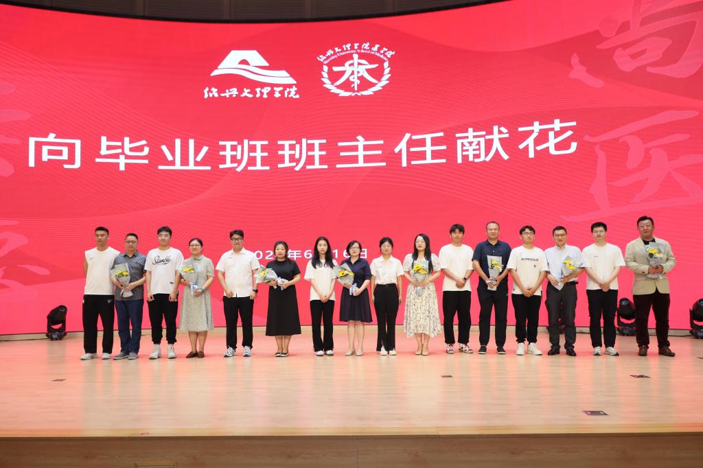 毕业学生为毕业班班主任鲜花。