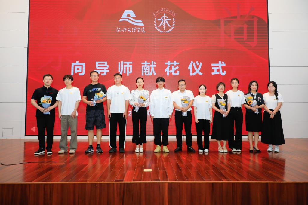 新生代表为研究生导师代表献花。