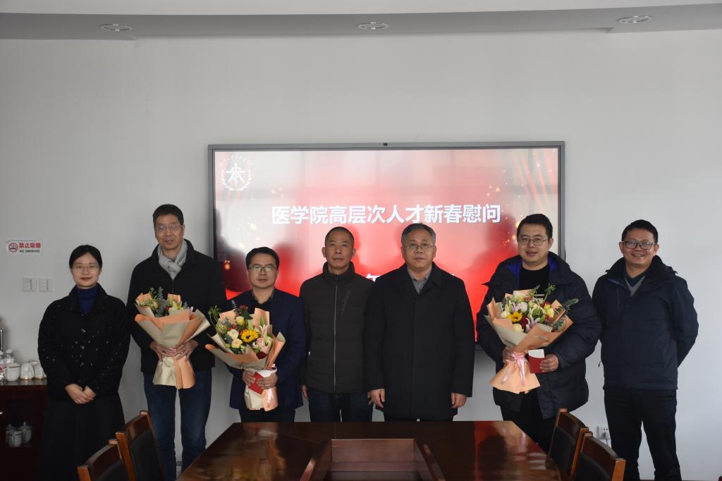 1月14日,副校长柳国庆、教务处副处长许映杰来学院慰问高层次人才朱柯武、余波、于郭。学院党委书记吴剑平、副院长金欣参加慰问。