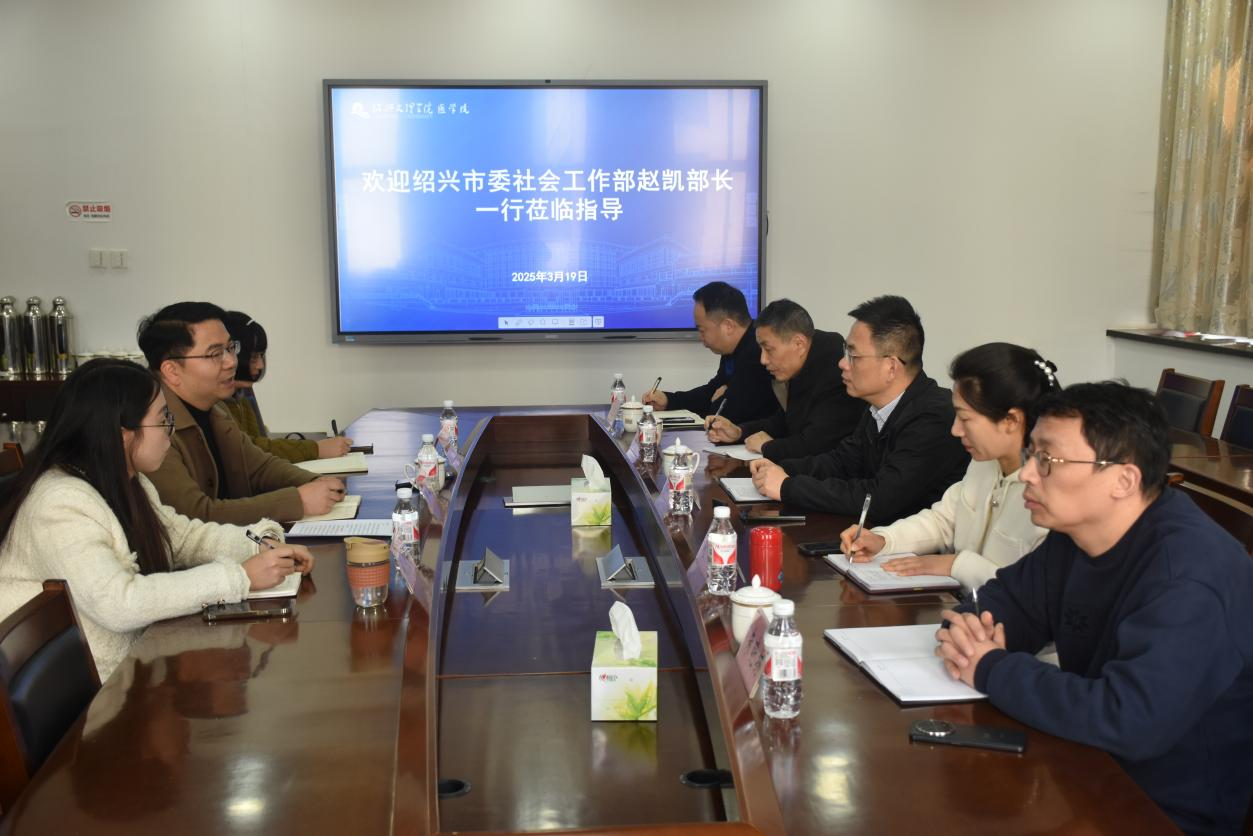 3月19日上午,绍兴市委社会工作部副部长赵凯,原绍兴市民政局党委副书记、一级调研员、市社会工作协会会长姜晓迪,市委社会工作部社会工作人才和志愿服务处处长戴怡,市委社会工作部社会工作人才和志愿服务处二级主任科员朱晓扬,绍兴市越城区委社会工作部副部长王正华一行赴学院开展社会工作与志愿服务协同工作专题调研。开云最新官方党委副书记、纪委书记、越城区志愿者协会会长林国旗及开云最新官方团委负责人陪同调研并参与座谈。
