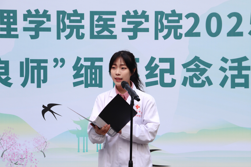 生命馈赠,仁心回报。临床医学232班学生代表李一瑾同学代表全体医学生发表讲话。“大体老师们用最无私的方式告诉我们:医学的终极意义,是让生与死之间多一份希望。在“大医精诚”的文化浸润下,我逐渐明白——医者的成长,不仅是技术的精进,更是心灵的淬炼 。”