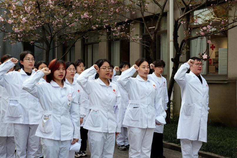 接着,由马国庆老师带领全体医学生进行医学生宣誓,绍医学子们将不忘初心,不负所托,为祖国医药卫生事业的发展和人类身心健康奋斗终生。